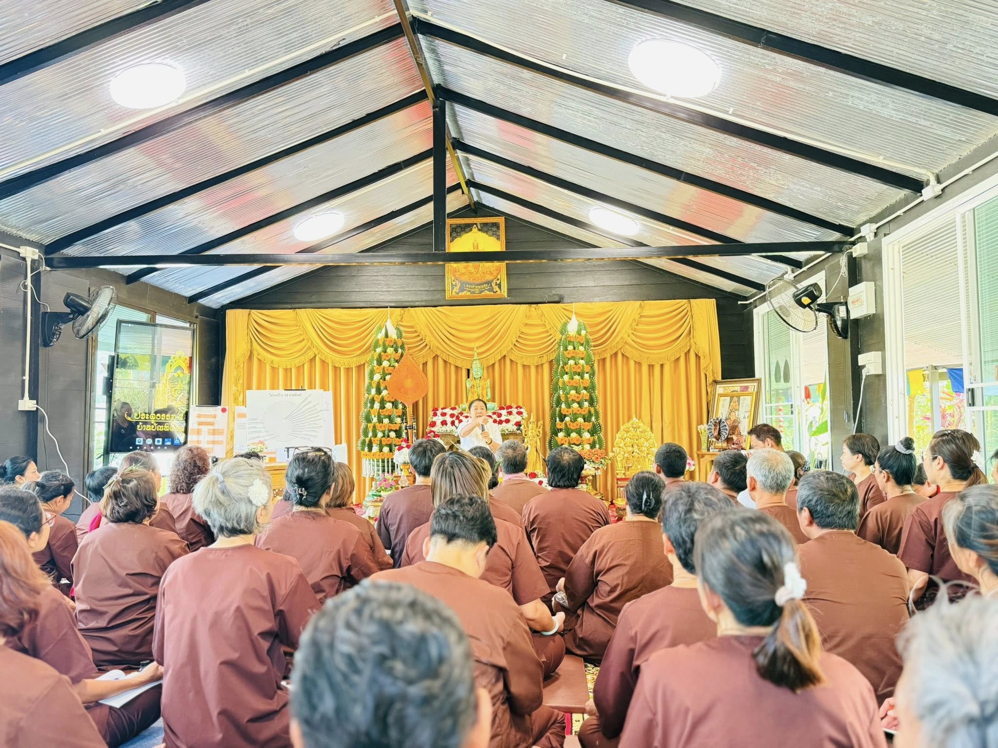 #ก่อนเข้าเขตประตูธรรม ให้ตั้งจิตนิ่งๆ แล้วบอกตัวเองว่า “ข้าพเจ้าขอวางตำแหน่ง ลาภยศ ความรู้ และความเก่งกล้าทางโลกไว้ข้างนอก ข้าพเจ้าขอเป็นเพียงคนธรรมดาที่มาเพื่อขัดเกลาใจ”