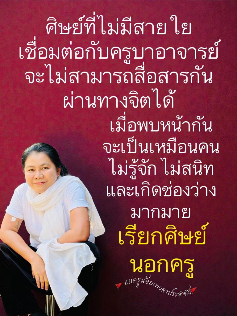 “แม่ครูน้อย”(หรือ แม่ครูน้อย ประตูธรรม ๕ หนเหนือ) คือผู้นำทางจิตวิญญาณที่เป็นที่รู้จัก จากการสอนเรื่อง “เทวดาประจำตัว” และการพัฒนาจิตใจผ่านการฝึกสติ ท่านมักเน้นย้ำถึงกระบวนการที่เรียกว่า “บันทึกจิต” ซึ่งเป็นการจัดการกับชุดความคิดและการกระทำเพื่อสร้างสภาวะชีวิตใหม่ ⭐️ จุดเด่นของคำสอนแม่ครูน้อย ที่เกี่ยวข้องกับการ “บันทึกจิตจิตใหม่” มีดังนี้ Ⓜ️ จิตคือเครื่องบันทึกพลังงานท่านสอนว่าจิตของเราบันทึกภาพและอารมณ์ทั้งบวกและลบไว้ตลอดเวลา หากเราบันทึกแต่เรื่องลบๆ จะกลายเป็น “#จุดรั่วไหลของบุญ” การบันทึกจิตเพื่อเปลี่ยนชีวิต: เน้นการฝึกให้มีสติเพื่อ “บันทึกจิตใหม่” ให้สะอาด มีความกตัญญูต่อธรรม และมีสัจจะ เพื่อเพิ่มกำลังให้เทวดาประจำตัวช่วยคุ้มครองและดึงดูดสิ่งดีๆ เข้ามา Ⓜ️ #การล้างรหัสกรรม: สอนเรื่องการเรียนรู้ที่จะปล่อยวางหรือ “จากไป” เมื่อเจอกับรหัสกรรมที่ไม่ดี เพื่อไม่ให้บันทึกจิตในทางที่เสื่อมเสียต่อไป ช่องทางติดตาม: สามารถศึกษาแนวคิดเพิ่มเติมได้ที่เพจ Facebook แม่ครูน้อยเทวดาประจำตัว หรือช่อง YouTube ของท่าน ได้ที่นี่ http://universethailand25.comFacebook : https://www.facebook.com/theangelspiritualYoutube : https://www.youtube.com/@theangelspiritual5130Tiktok : https://www.tiktok.com/@angelspiritual_krupui ติดต่อ/สอบถามแม่ครูน้อยLINE ID: @imepui (มี@)หรือโปรดคลิกที่นี่ https://lin.ee/4VoGamg