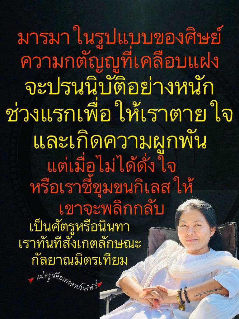 ⭐️ความกตัญญูที่เคลือบแฝง: มารในรูปศิษย์มักจะปรนนิบัติอย่างหนักในช่วงแรกเพื่อให้ท่าน “ตายใจ” และเกิดความผูกพัน แต่เมื่อไม่ได้ดั่งใจหรือท่านชี้ขุมขนกิเลสให้ เขาจะพลิกกลับเป็นศัตรูหรือนินทาท่านทันที สังเกตลักษณะกัลยาณมิตรเทียม
