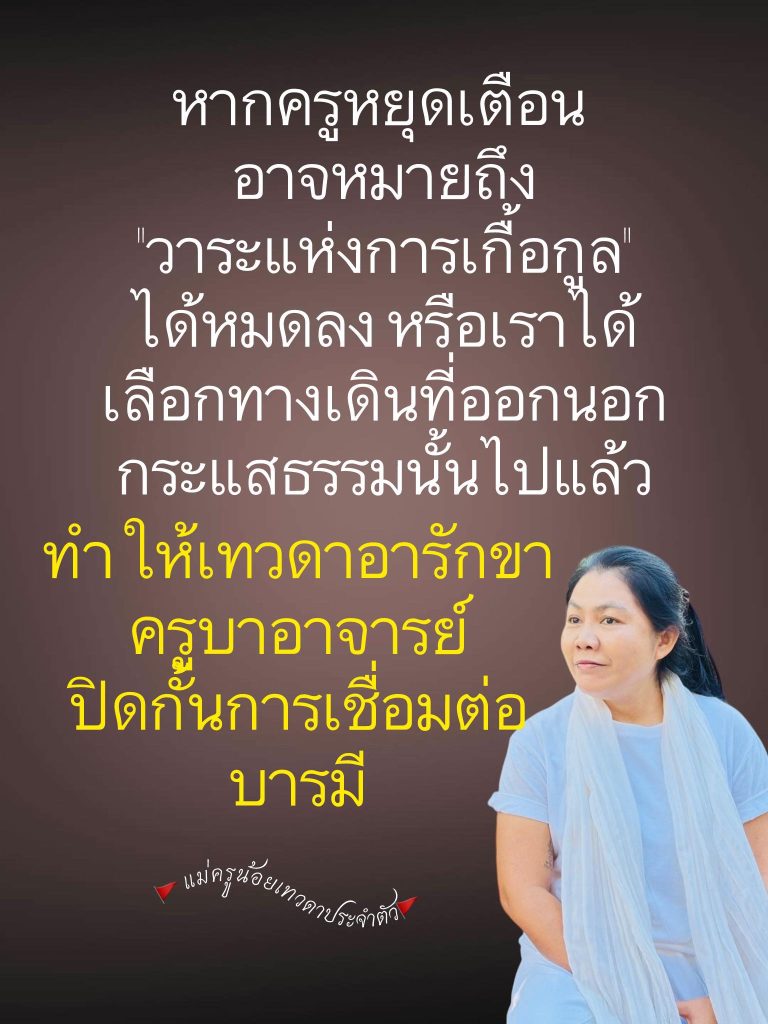 การที่ครูสอนเหมือนรู้เรื่องของเราทั้งที่ไม่รู้จักกัน เป็นเครื่องยืนยันว่าเรากำลังอยู่ในกระแส “พลังงานไหล” คือวาระบุญของเราเปิดออก ทำให้เราได้รับคำชี้แนะที่ถูกต้องในเวลาที่เหมาะสม เพื่อช่วยปิด รอยรั่วทางบุญ หรือเตือนสติเรื่องการ ผิดสัจจะ