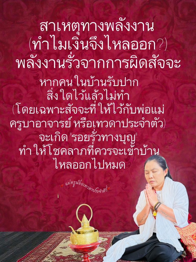 คนเจริญรุ่งเรืองคือคนที่ “พูดคำไหนทำคำนั้น” สัจจะเป็นตัวสร้างแรงดึงดูดทางพลังงานที่แรงที่สุด เมื่อมีสัจจะ สนามพลังงานรอบตัวจะมีความเข้มแข็ง ทำให้หยิบจับอะไรก็เป็นเงินเป็นทองและได้รับการสนับสนุนจากเทวดาประจำตัว